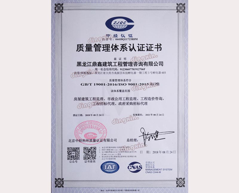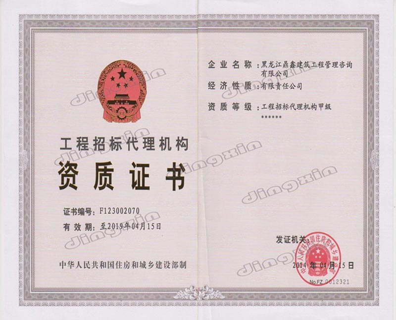 黑龍江鼎鑫建筑工程管理咨詢有限公司成立于2005年,注冊(cè)資金400萬元。具備中華人民共和國住房和城鄉(xiāng)建設(shè)部批準(zhǔn)的工程招標(biāo)代理機(jī)構(gòu)資格、中華人民共和國財(cái)政部批準(zhǔn)的政府采購招標(biāo)代理機(jī)構(gòu)資格、黑龍江省商務(wù)廳批準(zhǔn)的機(jī)電產(chǎn)品國際招標(biāo)代理機(jī)構(gòu)資格、中華人民共和國住房和城鄉(xiāng)建設(shè)部批準(zhǔn)的工程造價(jià)咨詢甲級(jí)資質(zhì)、黑龍江省住房和城鄉(xiāng)建設(shè)廳批準(zhǔn)的房屋建筑工程監(jiān)理乙級(jí)(市政公用工程監(jiān)理乙級(jí)資質(zhì))。主要從事建設(shè)工程及政府采購招標(biāo)、造價(jià)咨詢、工程監(jiān)理、項(xiàng)目管理等業(yè)務(wù)。